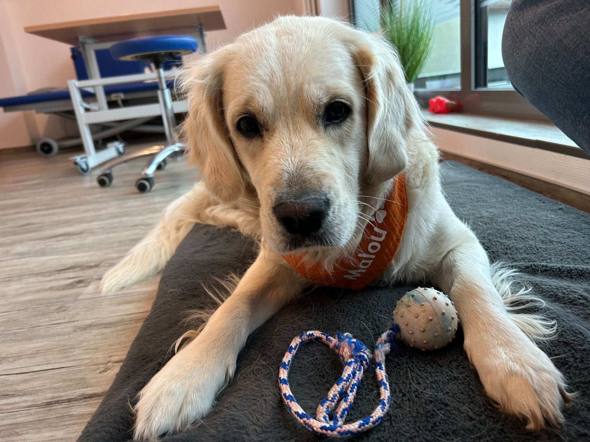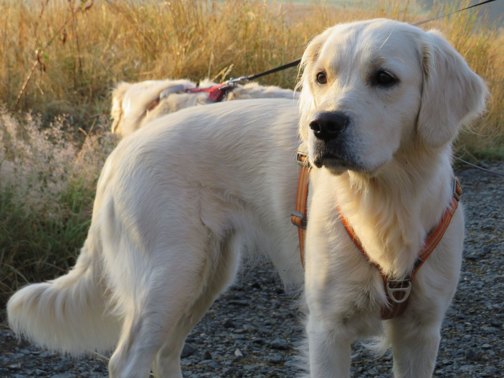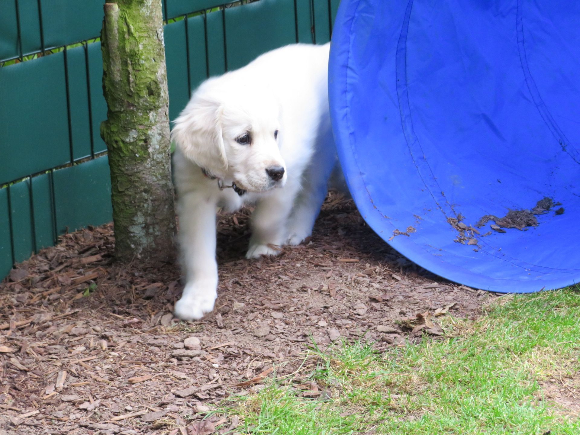 Die 13 Monate alte Golden Hündin begrüßt Menschen heute kurz und sanft, im Gelände ist sie sicher und selbständig, sie spielt nur kurz, am Apportieren und Suchen zeigt sie heute kein Interesse, im Parcours ist sie sicher, meist mehr mit dem Gelände beschäftigt. (04.09.2022)