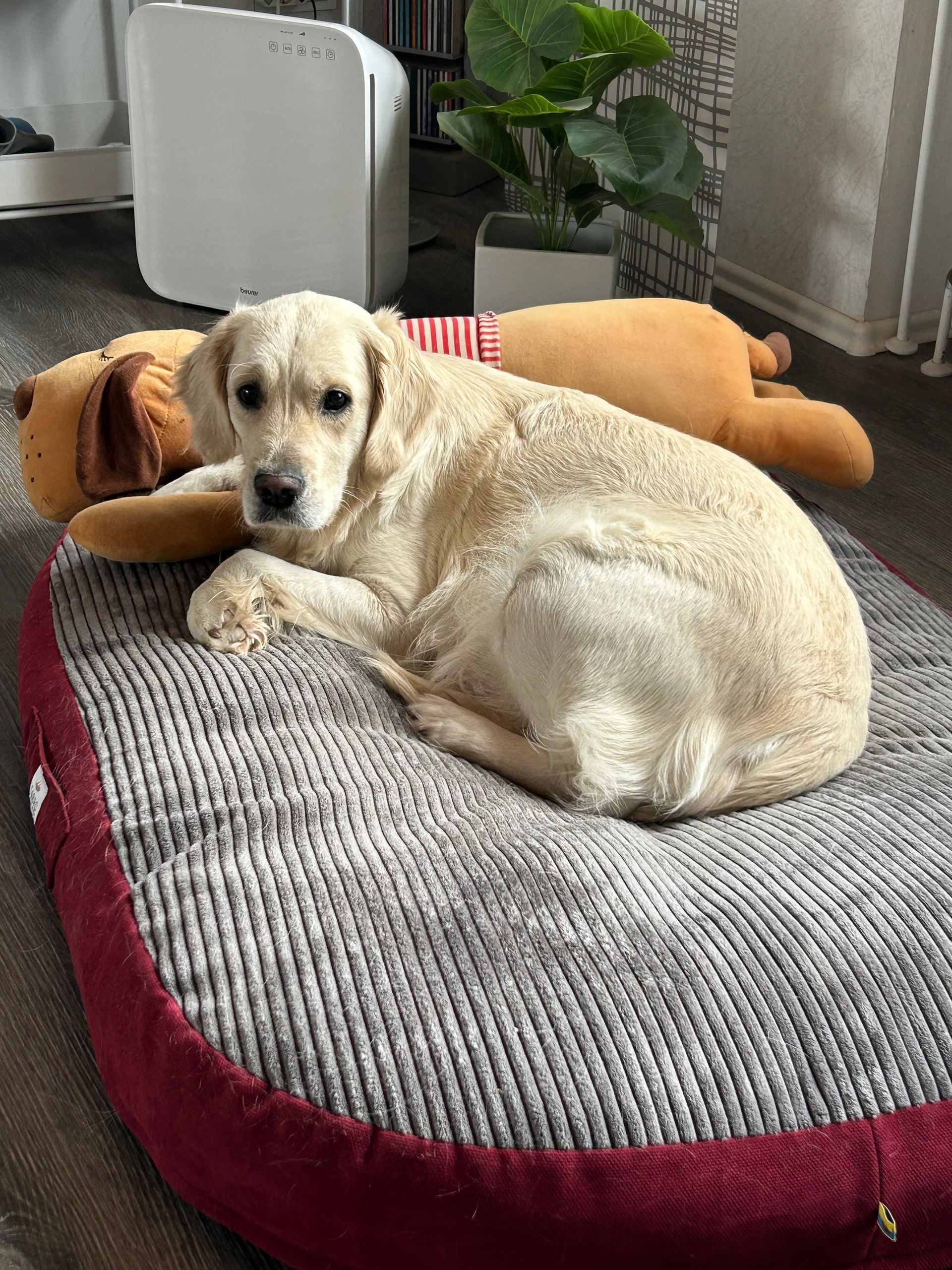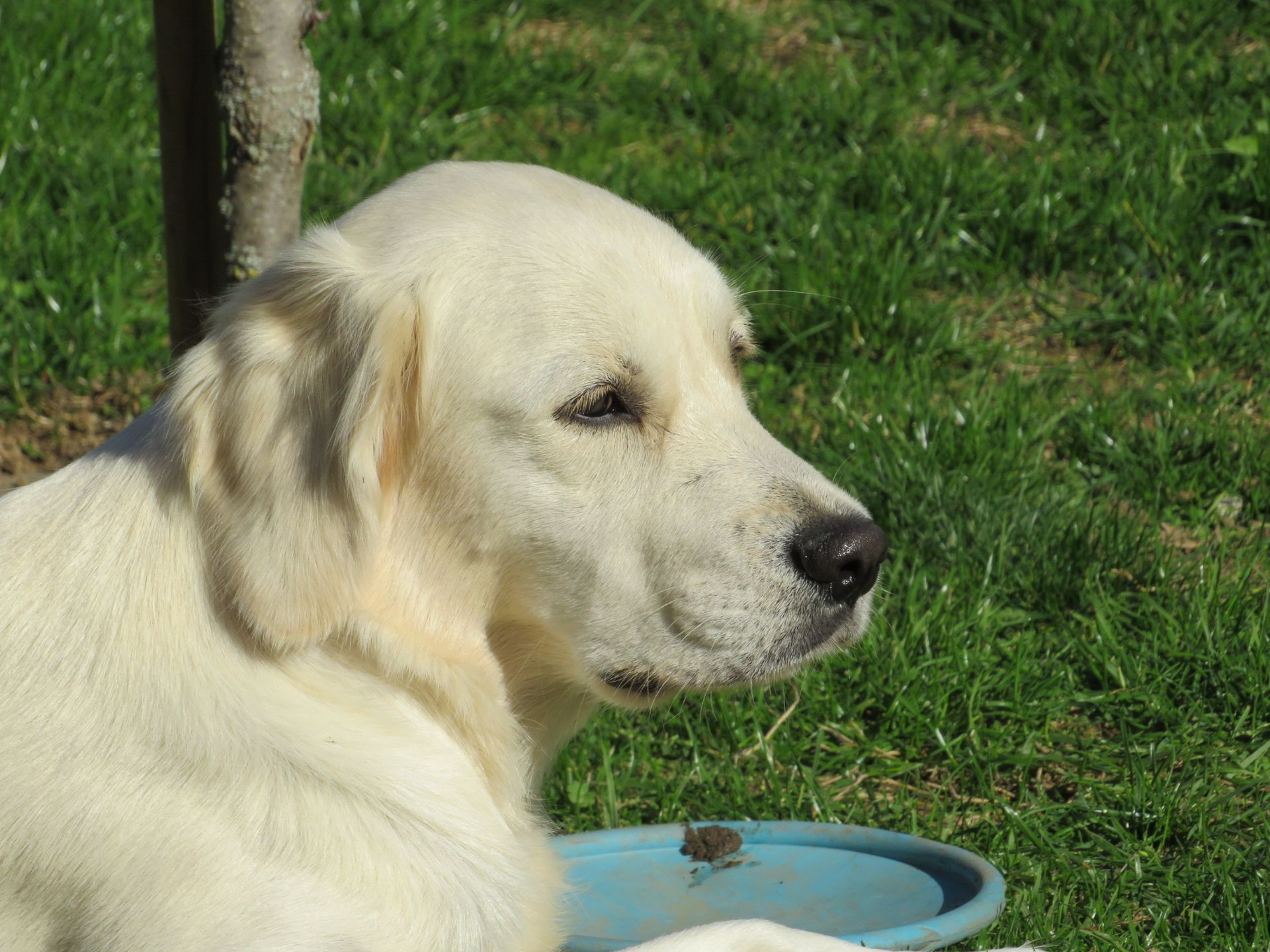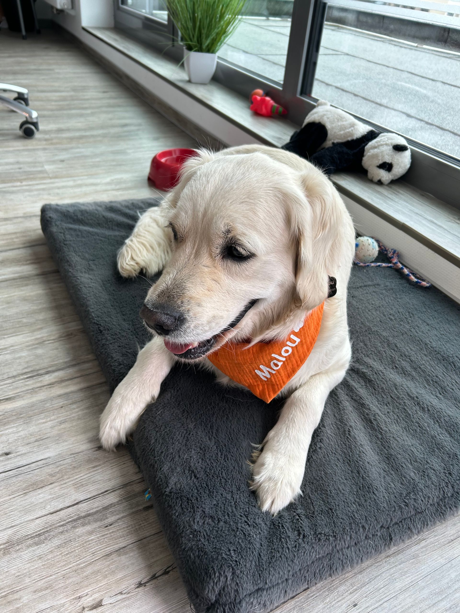 Die 13 Monate alte Golden Hündin begrüßt Menschen heute kurz und sanft, im Gelände ist sie sicher und selbständig, sie spielt nur kurz, am Apportieren und Suchen zeigt sie heute kein Interesse, im Parcours ist sie sicher, meist mehr mit dem Gelände beschäftigt. (04.09.2022)